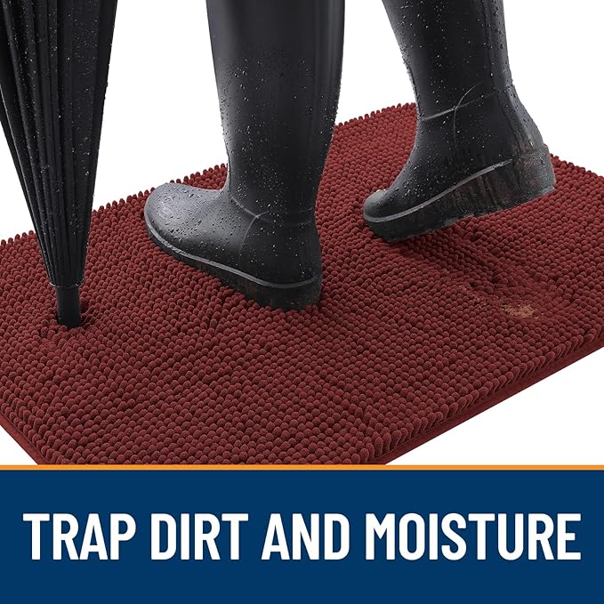 - [LOW PROFILE AND EASY CARE] OLANLY's Chenille Dog Door Mat boasts a slim 1-inch profile, offering a sleek and streamlined appearance. The thoughtful design ensures your doors won't get stuck, and the mat stays securely in place. Cleaning is a breeze – simply shake off any dirt or debris, or toss it in the washing machine for a deeper clean. It dries quickly, so you can be sure it's ready to use again in no time.