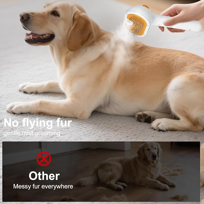 Pet Steam Brush for Dog & Cat – 3-in-1 Spray Hair Removal Comb – Steam for Shedding & Grooming – Water Brush for Long & Short Haired Pets – Spritz Defur Comb