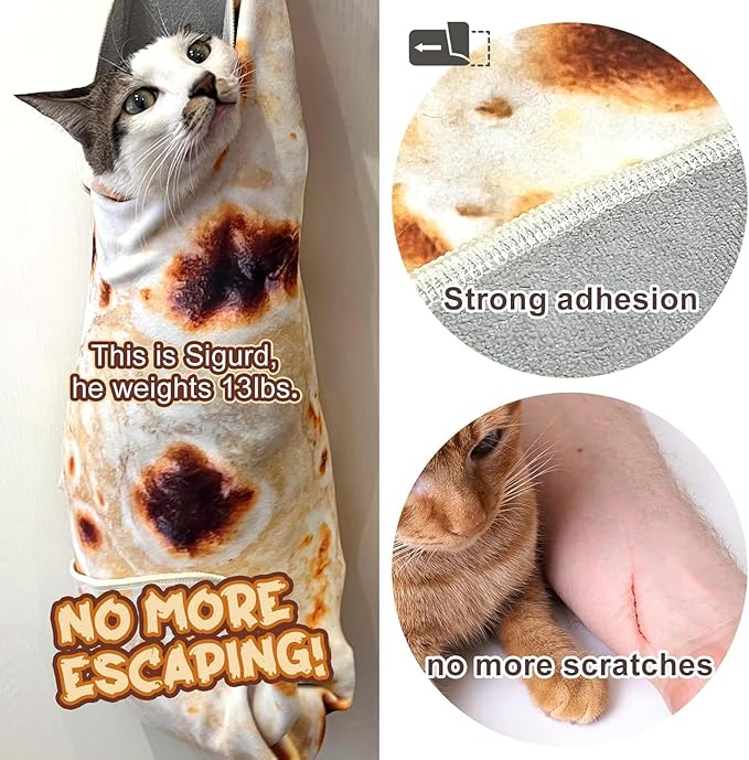 - Package: 1 Cat Wrap with funny realistic burrito tortilla pattern
