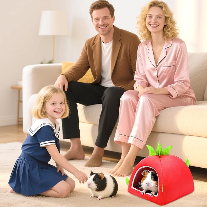 - Friendly Design: Designed in pitaya shape, the Guinea pig hidey is not easy to get dirty,very practical to use, with bright and beautiful patterns. The integrated design avoids accessories from slipping out and can also make the claws of small animals from being caught. The thickened inner cushion makes the Guinea pig bed stand upright and not easily deformed