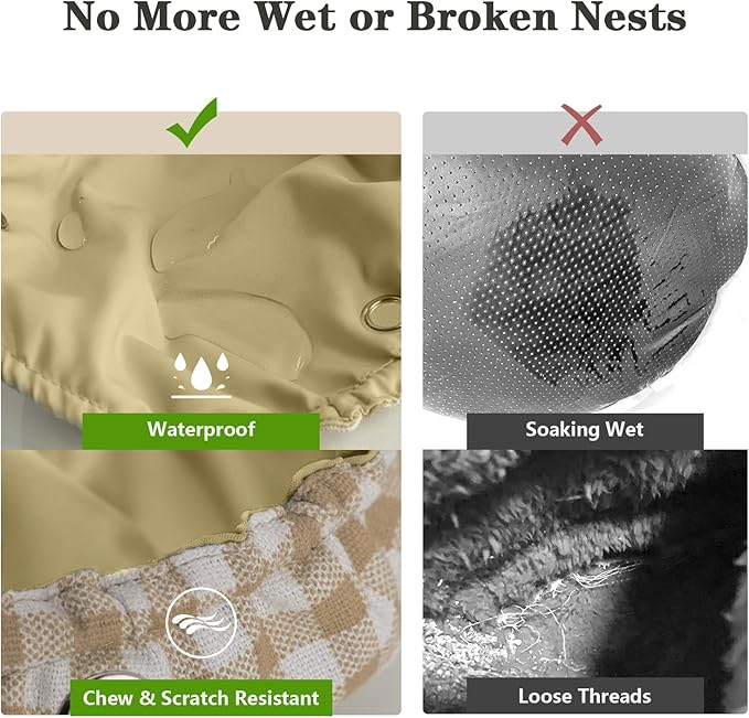 - Waterproof & Easy to Clean - The waterproof lining of this bird nest resists spills and droppings – simply wipe clean or hand wash in seconds! No more scrubbing stubborn stains! This essential bird cage accessory is perfect for busy pet parents who want a fresh, hygienic space for their chirpy companion.