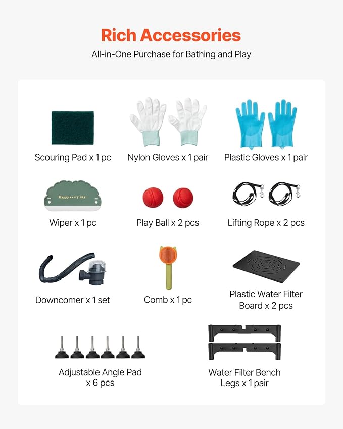 - Complete Accessories: This pet bath station comes with a showerhead, faucet, and a direct connection to a home hose, built for durability. It also includes a play ball, brush, and gloves, ensuring your pet enjoys a full and enjoyable bathing experience