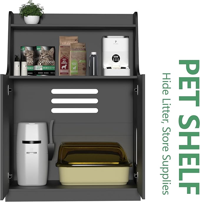 - Sturdy & Eco-Friendly: P2-certified particleboard weighs 30% more than competing litter box cabinets for rock-solid stability.