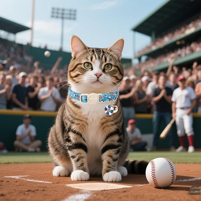 ARING PET 2 Pack Cat Collar-Cute Kitty Collars with Bell & Pendant, Adjustable Dinosaur&Baseball Kitten Collars with Safety Buckle for Girl and Boy Pets