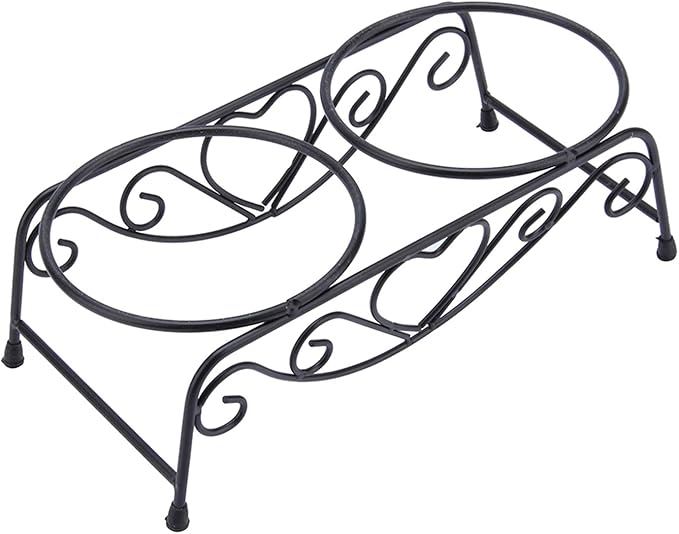 - HIGH QUALITY MATERIALS: Stainless steel bowls with baked iron stand create a sturdy dog bowl holder, The black frame and steel construction combine easy cleaning
