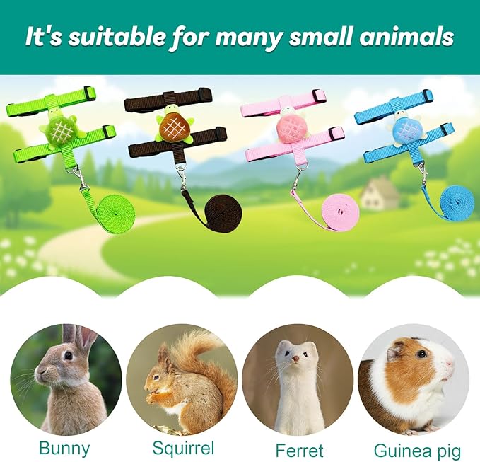 - You Will Receive: The package contains 4 sets of bunny leashes and harnesses in different colors, namely pink, Brown, blue and green, ample quantities and multiple colors can meet your small pet's daily wearing and replacement needs.
