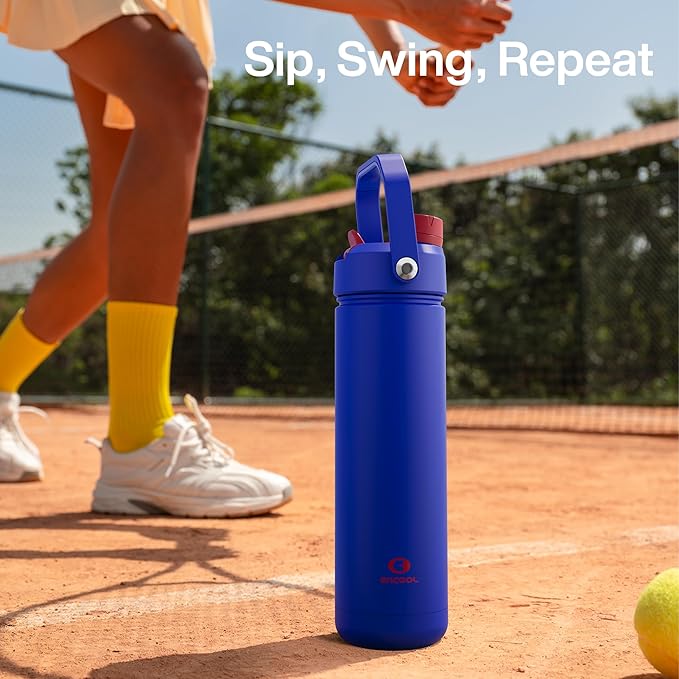 - Sip or Chug, Your Choice: Straw lid for sipping on the go and twist cap for deep hydration, all in one ENCOOL water bottle