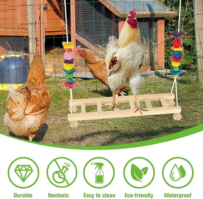 - DURABLE DESIGN: Sturdy perch swing provides a natural and engaging activity for chickens while promoting exercise and reducing boredom in the coop