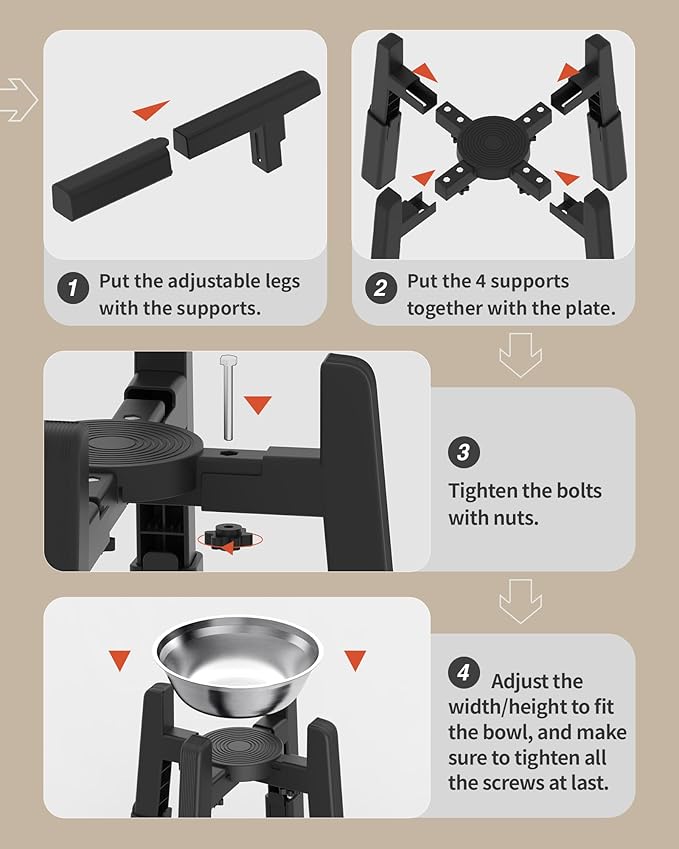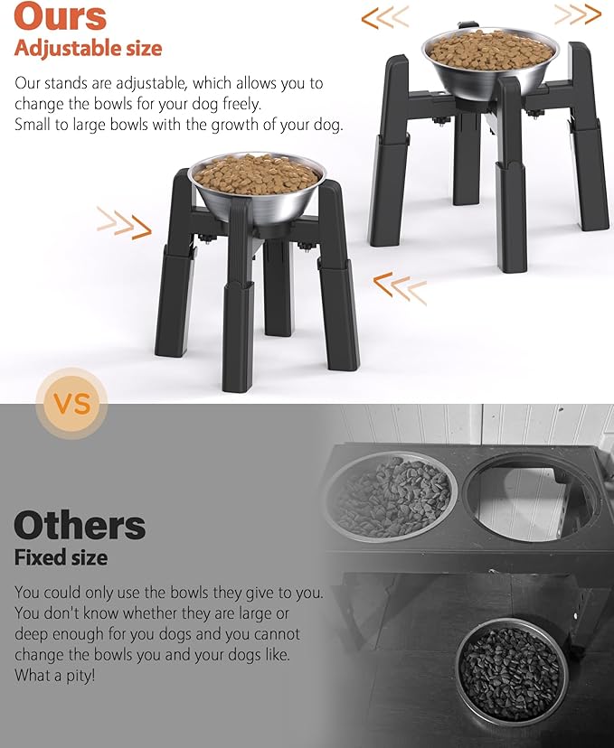 CZPET Dog Bowl Stand, 51 oz Large Capacity Raised Elevated Dog Food/Water Stainless Steel Feeder, Size and Height Adjustable & Anti-Slip Stand for Medium Dogs (2 Pack)