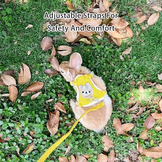 2-Pack Rabbit Harness and Leash Set – Adjustable Small Animal Vest Harness with Safety Buckle – Breathable & Lightweight – Ideal for Rabbits, Ferrets, Guinea Pigs, and Cats (Yellow)