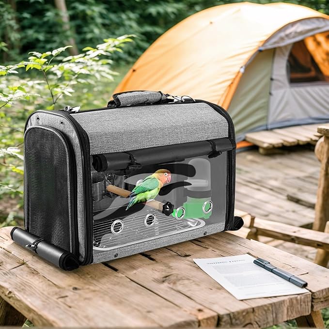 - [Lightweight and Portable Bird Bag] Sanmoncare bird travel carriers are made of light but durable material. It is suggested for Cockatiels, Conures, Quakers, Caciques, Parakeet, Lories, and any small size birds.