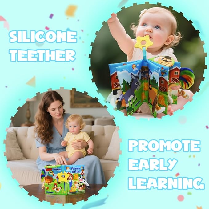 - Educational Value: The Montessori-inspired tails baby book is both entertaining and educational, boosting toddlers' cognitive skills. With interactive pages that rustle and a horse that squeaks when pressed, it enriches learning with sound, aiding in recognition and understanding of farm animals.