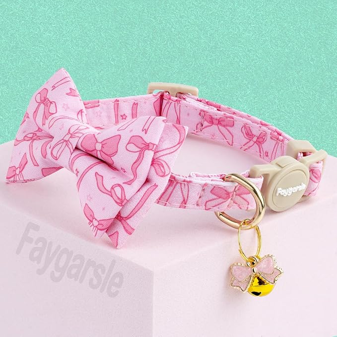 - STYLISH PATTERN: Adorned with a charming pink bow print design on light pink background, perfect for adding a feminine touch to your cat's appearance
