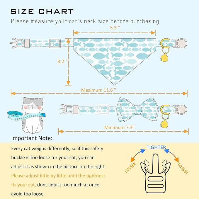 - STYLISH ACCESSORIES: Comes with both a matching fish-pattern bandana and removable bowtie, perfect for adding a fashionable touch to your cat's appearance