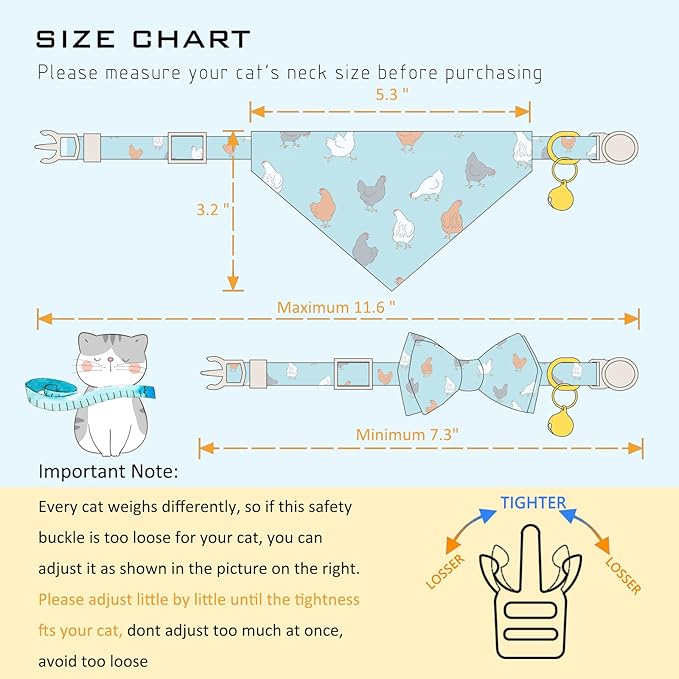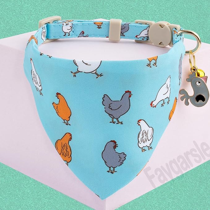Faygarsle 2 Pack Chicken Pattern Cat Collar Set with Bandana and Bowtie, Light Blue, Breakaway Safety Clasp with Bell