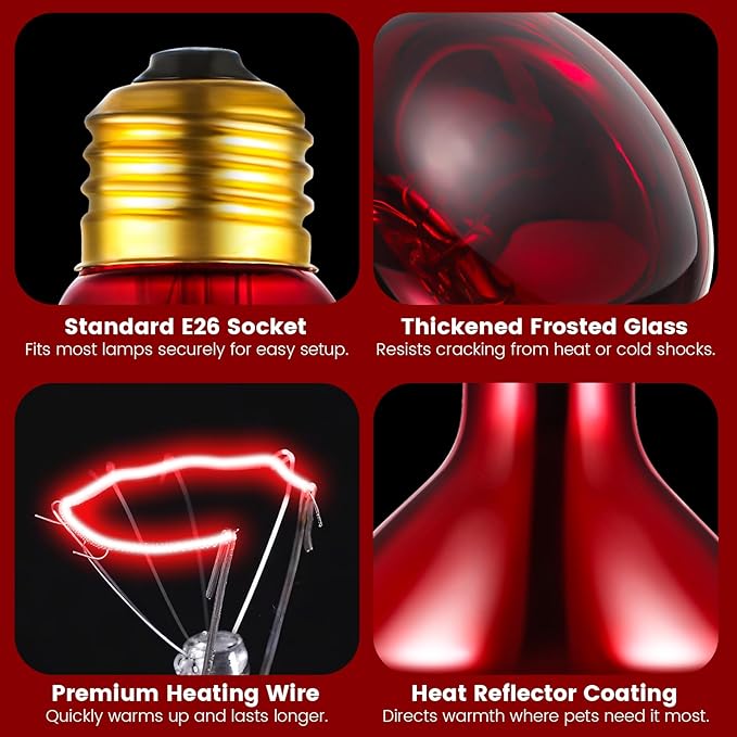 2-Pack 100W Infrared Heat Lamp - Reptile Heat Emitter, Red Heat Bulb for Chicked, Snake & Leopard Gecko, E26 Base