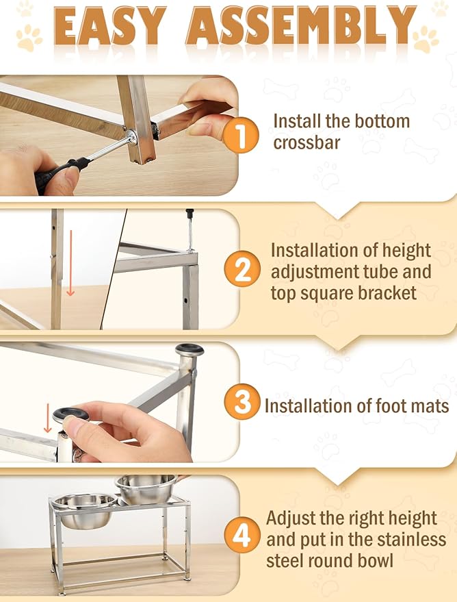- Sturdy & Stable: The dog bowls elevated features thick, rust-proof stainless steel bowls, the strong metal stand offers dependable support, while the anti-slip pad on the bottom keeps the bowl in place, minimizing the risk of spills or tipping during mealtime.