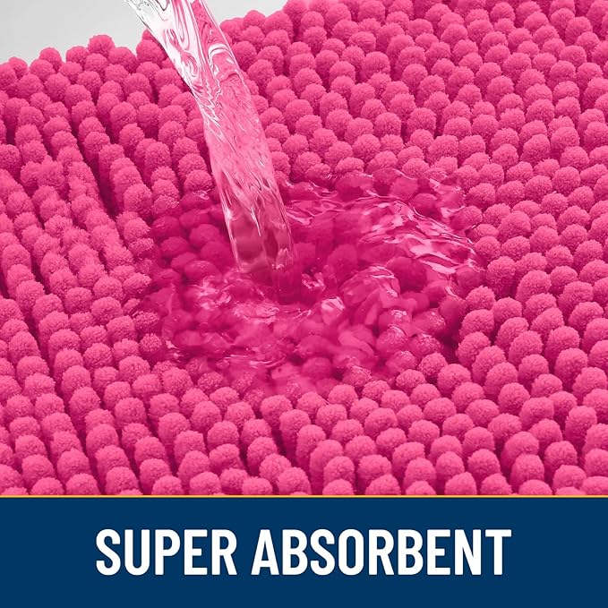 Smiry Dog Door Mat for Muddy Paws 30x20, Absorbs Moisture and Dirt Doormat, Non-Slip Washable Quick Dry Chenille Front Door Mat Indoor Entrance, Entryway Carpet for Inside Floor, Hot Pink