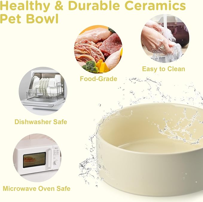- Lead-Free Ceramic Pet Bowls - 7.3" Ceramic Dog Bowls with 42 OZ Capacity Fired at high temperature with a food‑grade glaze that contains zero lead or cadmium, these non‑porous bowls help keep meals tasting fresh, rinse clean in seconds, and both MICROWAVE SAFE and DISHWASHER SAFE