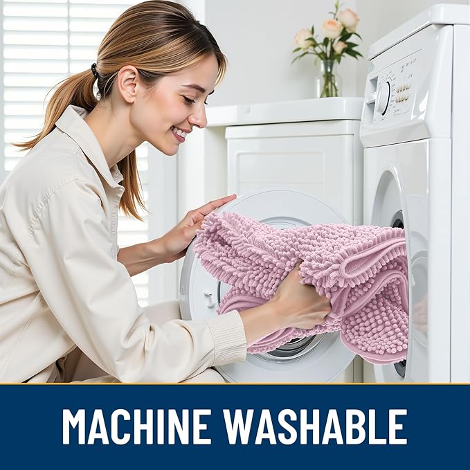 Smiry Dog Door Mat for Muddy Paws 30x20, Absorbs Moisture and Dirt Doormat, Non-Slip Washable Quick Dry Chenille Front Door Mat Indoor Entrance, Entryway Carpet for Inside Floor, Dusty Rose