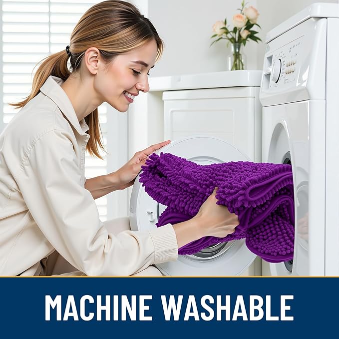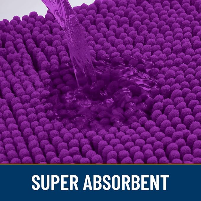 Smiry Dog Door Mat for Muddy Paws 24x16, Absorbs Moisture and Dirt Doormat, Non-Slip Washable Quick Dry Chenille Front Door Mat Indoor Entrance, Entryway Carpet for Inside Floor, Purple