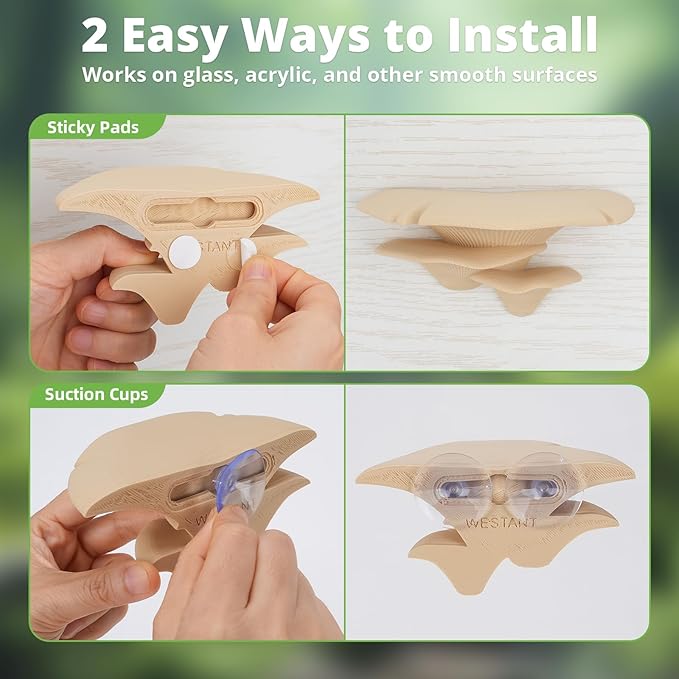 - 2 Ways to Install – These fake plants for reptiles easily stick to any smooth surface using suction cups or sticky pads, perfect for upgrading your snake tank accessories, axolotl tank accessories, and frog tank accessories.