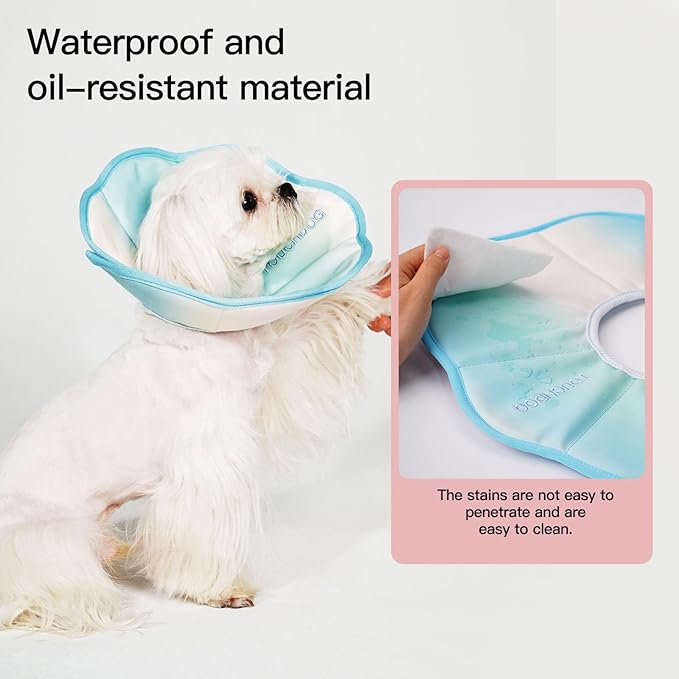 Touchdog Foldable Dog Cone Collar for Cats & Dogs - Adjustable Soft Recovery Collar with Waterproof PU Coating, Lightweight Design, 24.5cm/9.6in Wide Barrier (Blue Gradient Color, L)