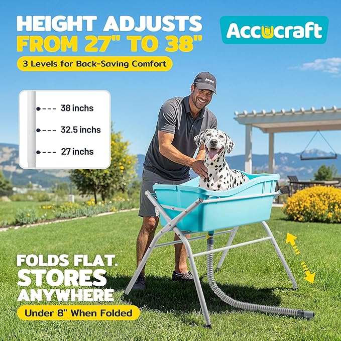 - [Adjustable Height] Easily adjust to 3 different levels for a comfortable pet bathing experience, reducing strain on your back and knees.