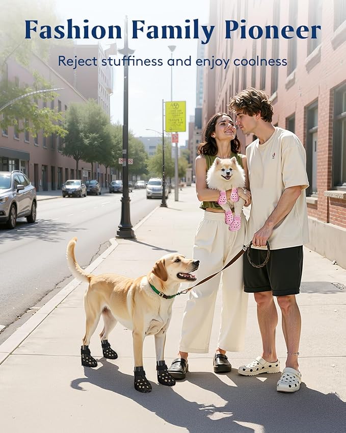 - PET FASHION LEADER:Dog's OOTD! SOLOWINNER dog shoes for hot pavement broke the traditional fabric dog shoes design, it's made of super soft silicone. It's like name brand cros sandles, more beautiful and atmospheric, easy clean, dry quickly and will not hide dirt, which makes your furry friend have a good wearing experience, enjoy treatment like a human being and to be a pet fashion leader.