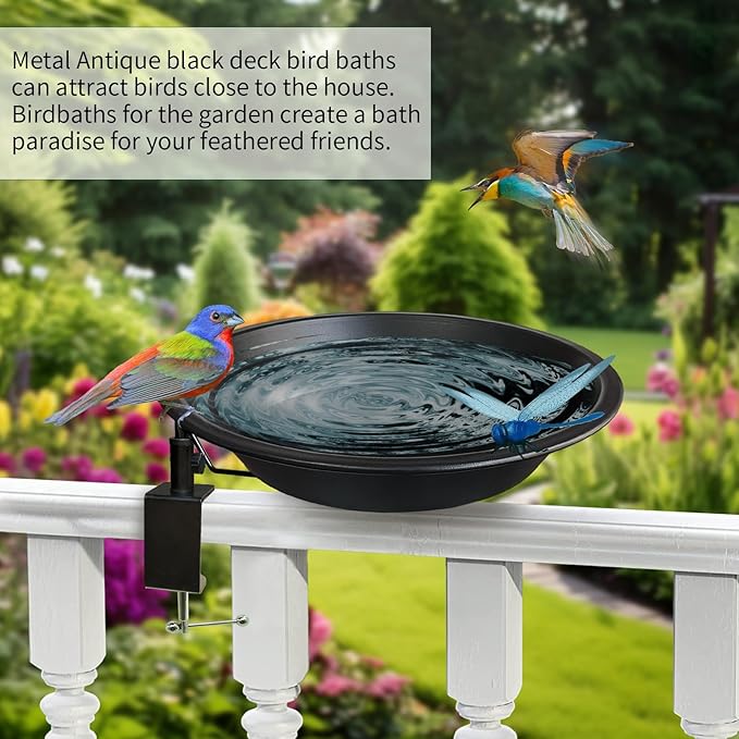 - Sturdy Metal Deck Mounted Bird Bath: Crafted from high-quality metal, this bird bath is built to last, providing a reliable water source for your feathered friends in your garden, patio, lawn, or yard