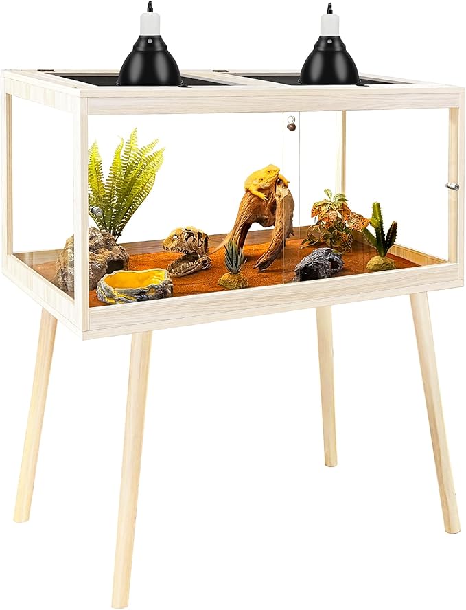 - 【High-Quality Reptile Habitat】Designed for reptile enthusiasts who seek a dependable and comfortable space for their pets, this high-quality habitat is crafted from sturdy solid wood treated with water-repellent coatings on both sides. It's ideal for terrestrial reptiles such as bearded dragons, snakes and tortoise , providing a dry and stable environment for daily activity. Please note: this cage is not intended for aquatic use.