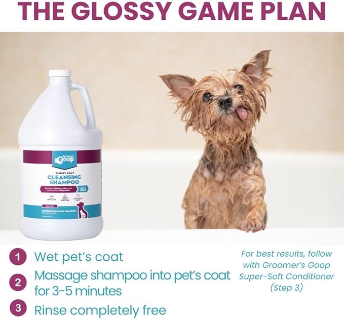 Groomer’s Goop Glossy Coat Pet Shampoo - Deep Cleansing Formula Enhances Shine & Luster in Dog & Cat Coats, Moisturizes Skin, Rich Lather - 1 Gallon Bottle