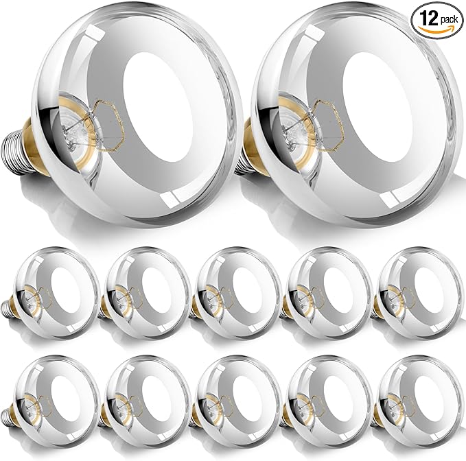 250W R40 Heat Lamp Bulbs, 8000 Hours Rated, Bathroom Shower Incandescent Light Bulb, Infrared Heating for Chickens, Reptiles, Pets, Food, E26 Base, 12 Pack