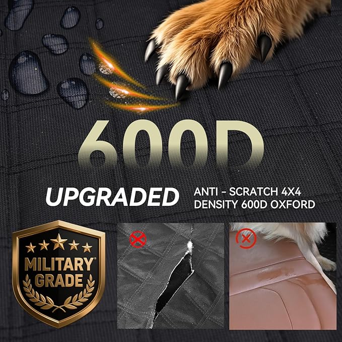 - Heavy Duty, High-Quality Materials:Our dog car seat cover is built with three thickened PP hollow boards, supporting up to 500 lbs to ensure long-lasting durability and a stable, reliable base for your pet — especially large dogs — during travel.
