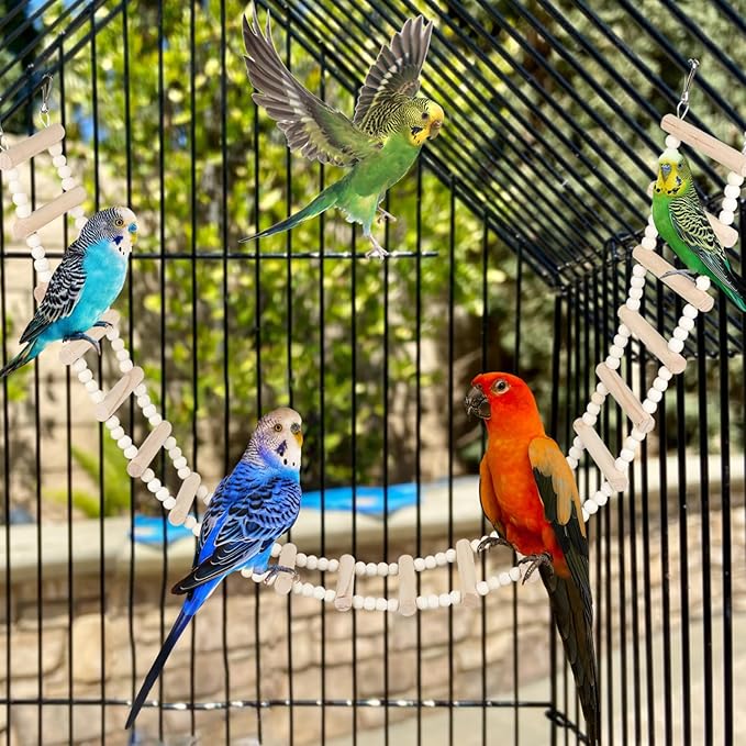 - Natural Wood & Pet-Safe Materials – Crafted from high-quality natural wood and non-toxic beads, this ladder bridge is safe for chewing, climbing, and daily play. A perfect, eco-friendly toy for birds and small animals.