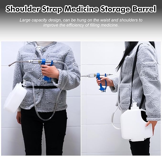 - 【Efficient Hands-Free Operation】: The included 2.5L portable tank with shoulder strap and belt clip allows hands-free dosing, perfect for mobile ranch work or large-scale farms. Continuous drenching saves time and reduces labor, streamlining care for multiple animals in one session.