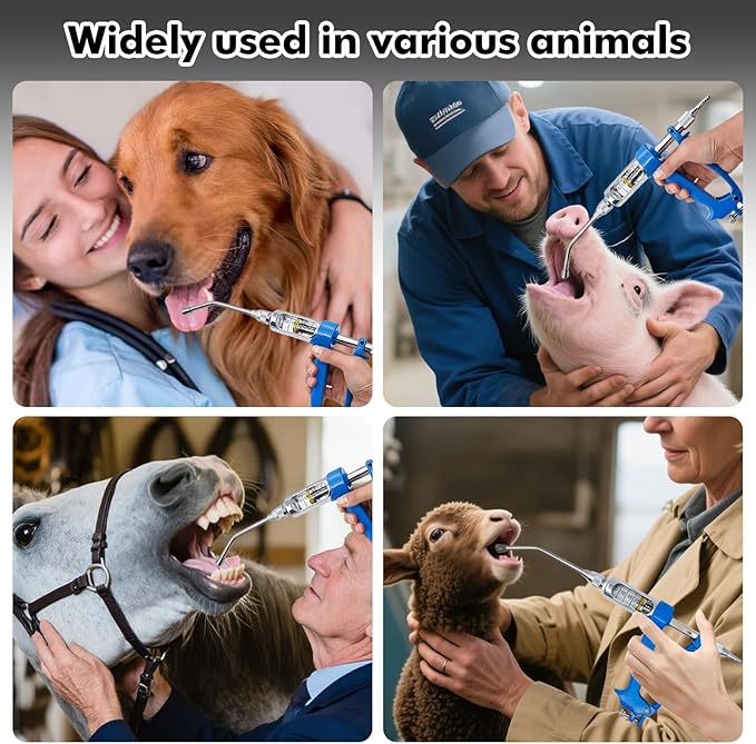 - 【Safe & Gentle Oral Delivery】:Crafted with a polished, non-toxic stainless steel tip, this drench gun ensures safe and comfortable medication delivery for livestock. The smooth-edged design prevents mouth injuries, making it ideal for cattle, pigs, sheep, and horses during routine health checks.