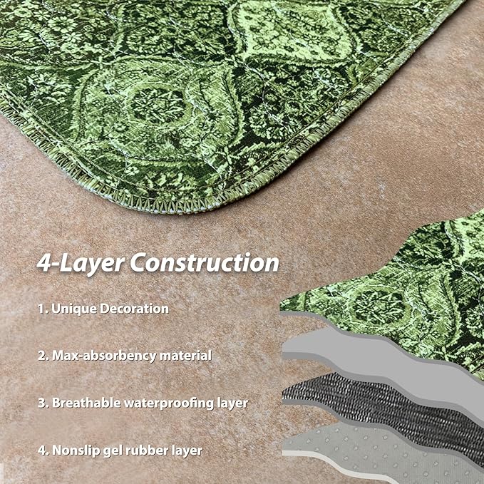 nunubaby Washable Pee Pads for Dogs, Stylish, Non-Slip and Leak-Proof Pee Pads. Reusable Potty Pads for Dogs for Crates and Floors.(Green/Multi, 36" x36")