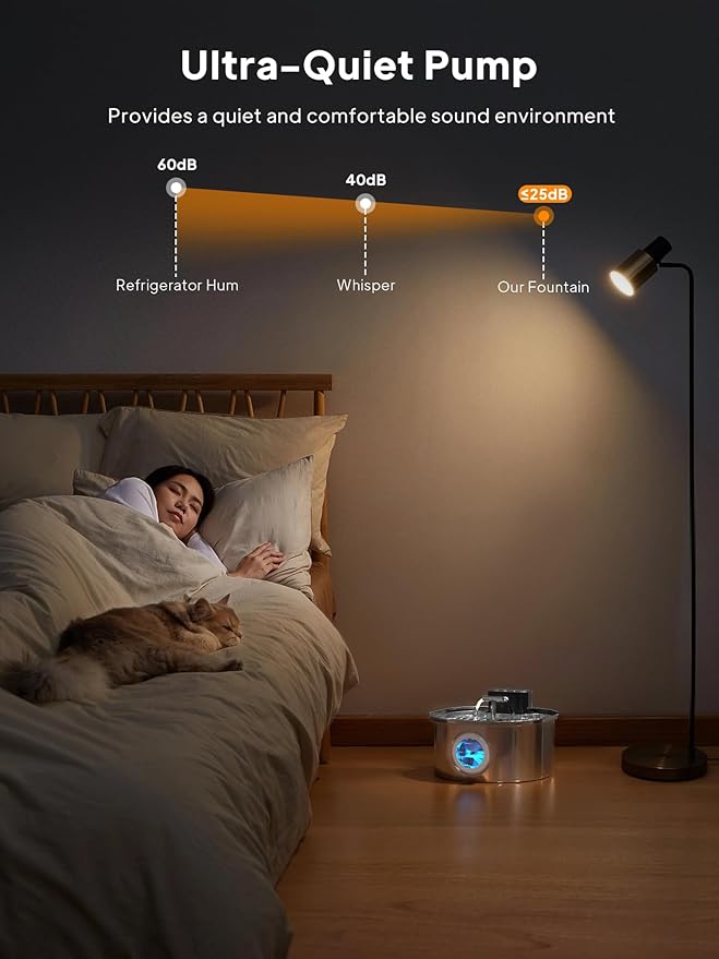 - 【High-capacity Battery】Powered by rechargeable built-in battery, VOLUAS wireless cat fountain can dispense fresh and clean water up to 40 days on a full charge. It will keep your cats hydrated even during power cuts or when you take short trips.