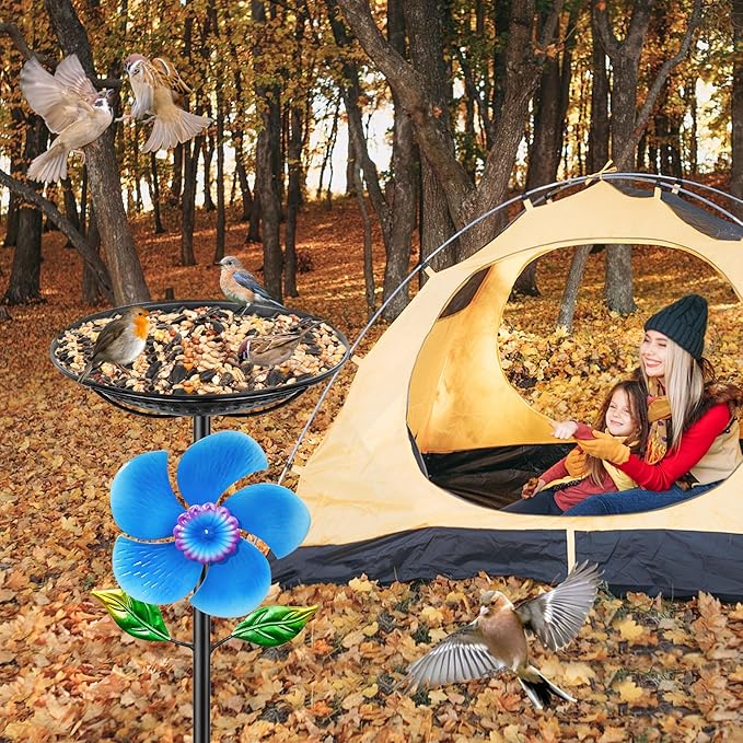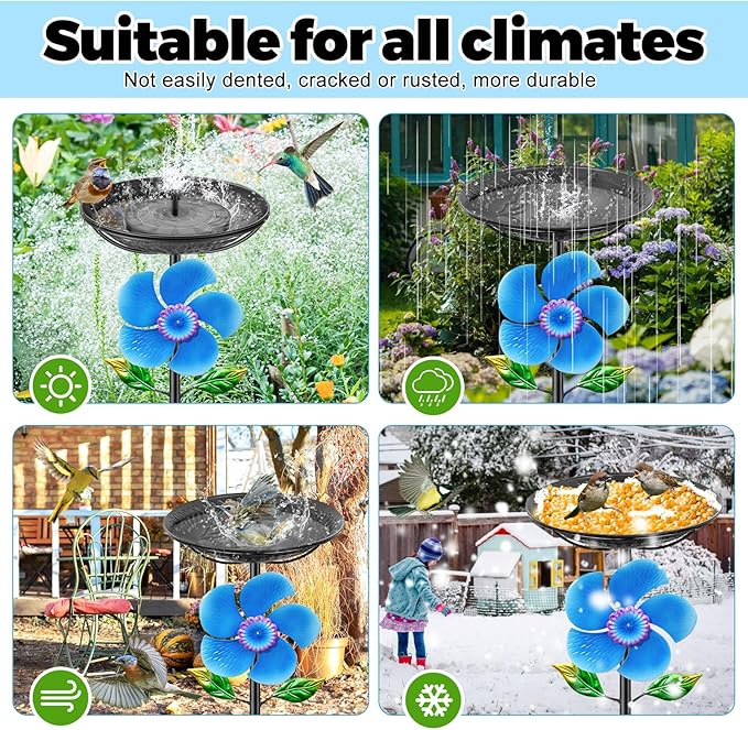- 【Great Gift Idea】Dynamic spinning blades catch the breeze effortlessly, creating mesmerizing reflections and movement. Our outdoor bird bath is a perfect gift for nature lovers, wild bird watchers, and animal enthusiasts. Gift for occasions such as Mother's Day, Father's Day, Christmas, birthdays, or housewarming