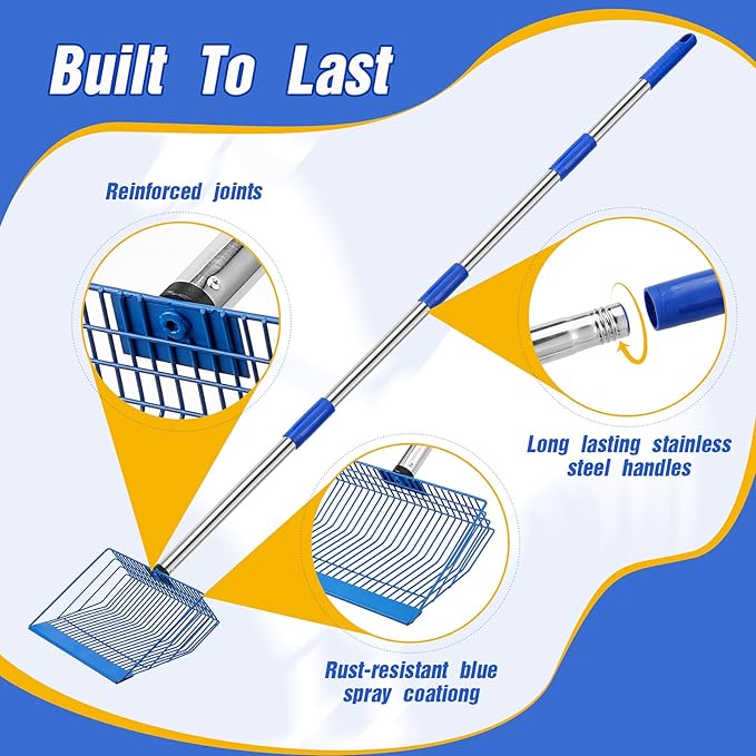 - Beautiful and Sturdy - This chicken poop scooper features reinforced, laser-welded joints, a stainless steel handle and blue rust-resistant, making it both aesthetically pleasing and ensuring your investment lasts for a long time.