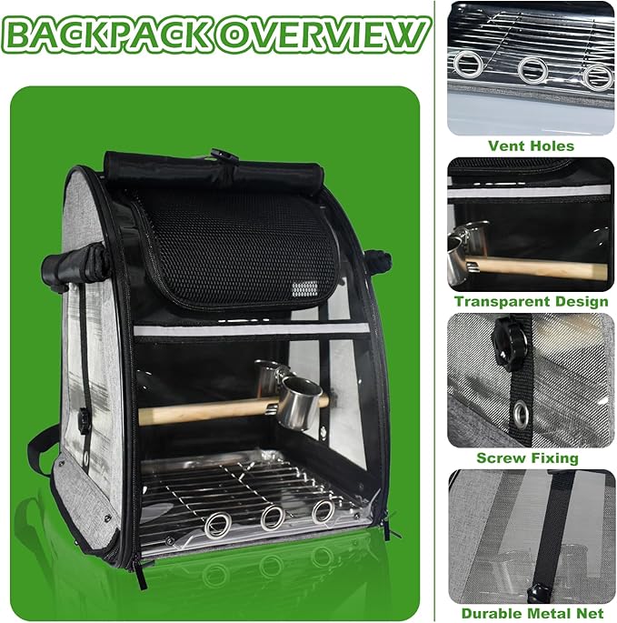 - 【STAINLESS STEEL MESH】Both sides of the bird carrier backpack are equipped with scratch - resistant 304 stainless - steel mesh for excellent ventilation and no bird can chew it out. If you have any questions, please feel free to contact us. We provide 24h service, ensuring you have a worry - free experience with our bird travel carrier.