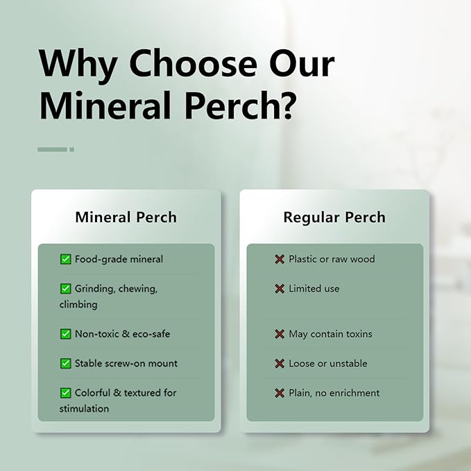 - ✅ 100% Natural & Safe Materials ---- Crafted from 100% porous natural minerals and food-grade coloring, our bird perch toys are completely safe for your feathered friend. Colors won’t fade even after washing. A trusted choice for parrot cage accessories that prioritize pet safety.