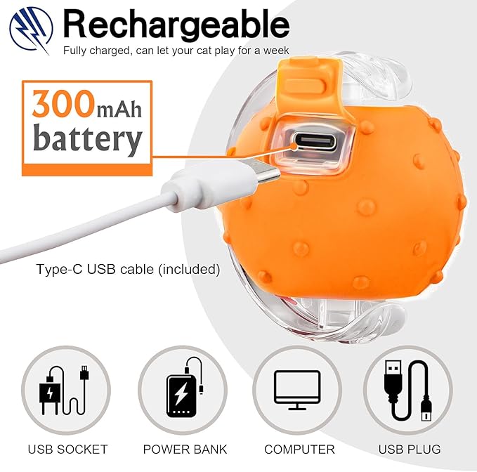 - Bird Chirping & Interesting Tail for Hunting - This automatic cat ball has realistic bird sounds, which can attract cats to be interested in this bird chirping cat toy and trigger their hunting instincts. The elastic tail accessory moves rapidly along with the ball, making your cat think it is an agile mouse and go crazy for it. Perfect hunting toy for cat. In the package, we have included two different tail accessories for your convenience of replacement.