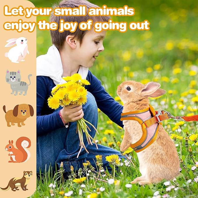 - Reflective Strip Design: Our bunny harness and leash is equipped with reflective strips to help you improve visibility in low-light environments. Whether at night or outdoors, you can clearly see where your pet is, adding safety to outdoor activities