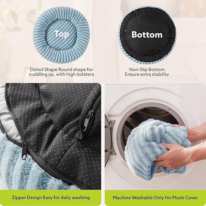 MIXJOY Dog Beds for Small Dogs, Washable Dog Bed with Removable Cover, Small Cat Bed for Indoor Cats, Calming Soft Dount Pet Beds with Anti Slip Bottom, Cute Puppy Beds, 23"x23"x8", Blue