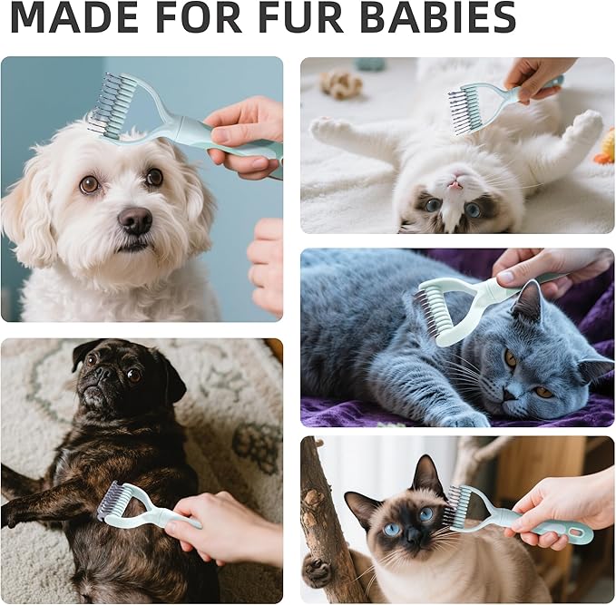 - Professional Dog & Cat Grooming Comb: Dual-action stainless steel teeth gently detangle top coats while removing loose undercoat. Long pins smooth fur, short pins lift debris—ideal for all coat types