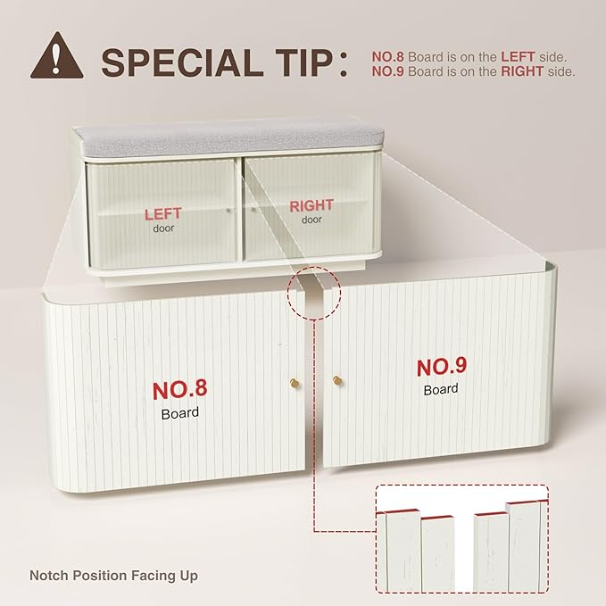 - Space-saving Sliding Door Design: When you sit on this entry way bench to change your shoes, the sliding door allows you to open and close it more conveniently to pick up and place your items, while keeping them away from dust and pets
