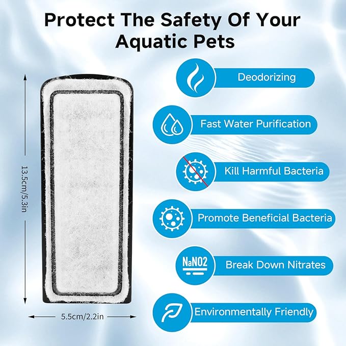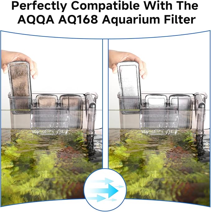 - IDEAL REPLACEMENT FILTER WITH STRONG COMPATIBILITY - Perfectly compatible with the AQQA AQ168 aquarium filter. The filter cartridge measures 5.3 inch in length and 2.2 inch in width, specifically designed for your aquarium. With this filter, you can effortlessly maintain healthy and clear water, providing the best environment for your fish