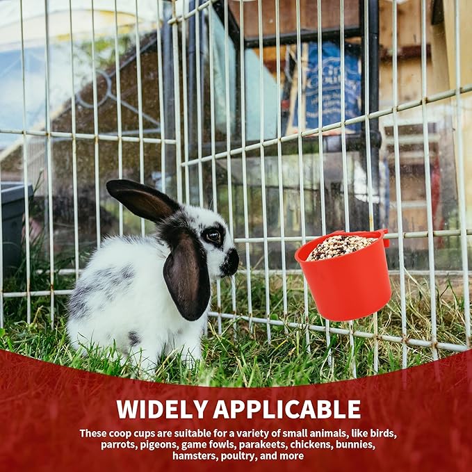 - 【Widely Applicable】 Designed for feeding numerous small animals or poultry,these coop cups are suitable for a variety of small animals, like birds, parrots, pigeons, game fowls, parakeets, chickens, bunnies, hamsters, poultry, and more.